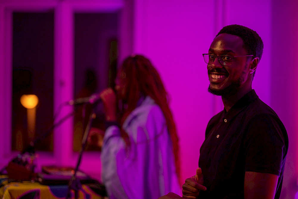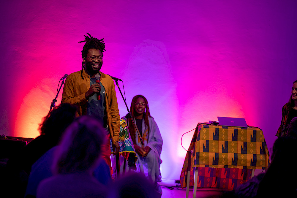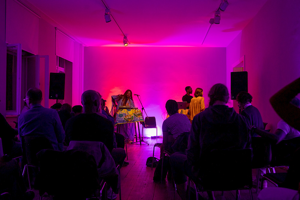 Elsa M'bala performed her writings and music at various events throughout Europe and the African continent. From Centre d'art contemporain de Bretigny, Bandjoun Station (CMR), Engagement global (DE), Aperture Magazine (USA), Contemporary And (C&); (DE), New Art Exchange Nottingham (E), Institut für Auslandsbeziehungen (ifa);(DE), Goethe Institut Kamerun, Centre Culturel Francais du Cameroun, Alte Oper Frankfurt, KW Berlin, heroines of sound festival Berlin, Augmented reality festival Darmstadt , She is one of the incubators Winners for Berlin Community Radio 2017 and had a regular radio show on the platform before it closed in 2019. She is currently in a residency at Ker Thiossane in Dakar, Senegal.